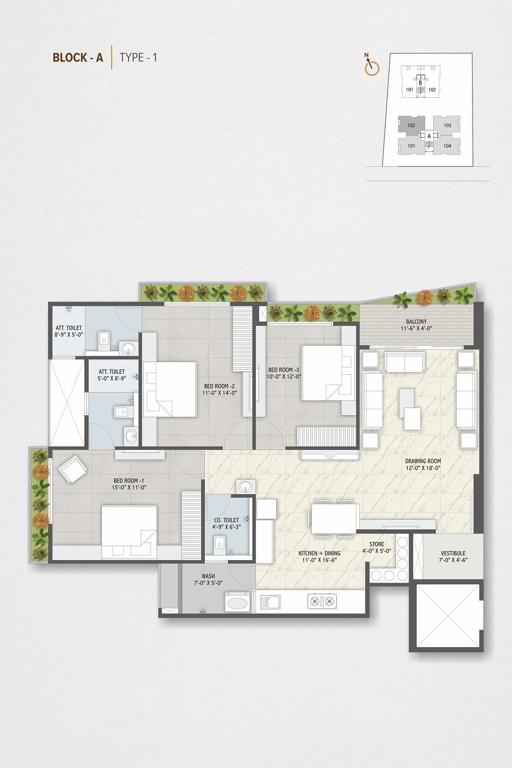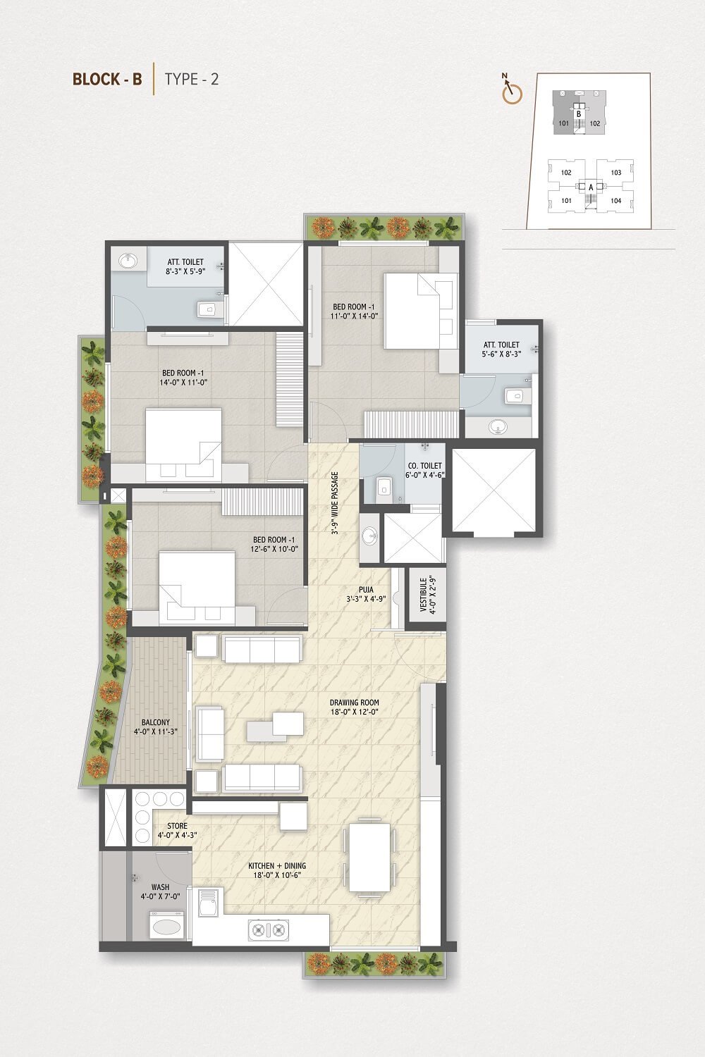 The project has 78 exclusive and finest 3 BHK apartments to provide a new, plush living experience. Our apartments are designed to enhance your lifestyle by creating a beautiful journey. With a plethora of modern amenities, it has the right mix of style and quality to meet your lifestyle needs.