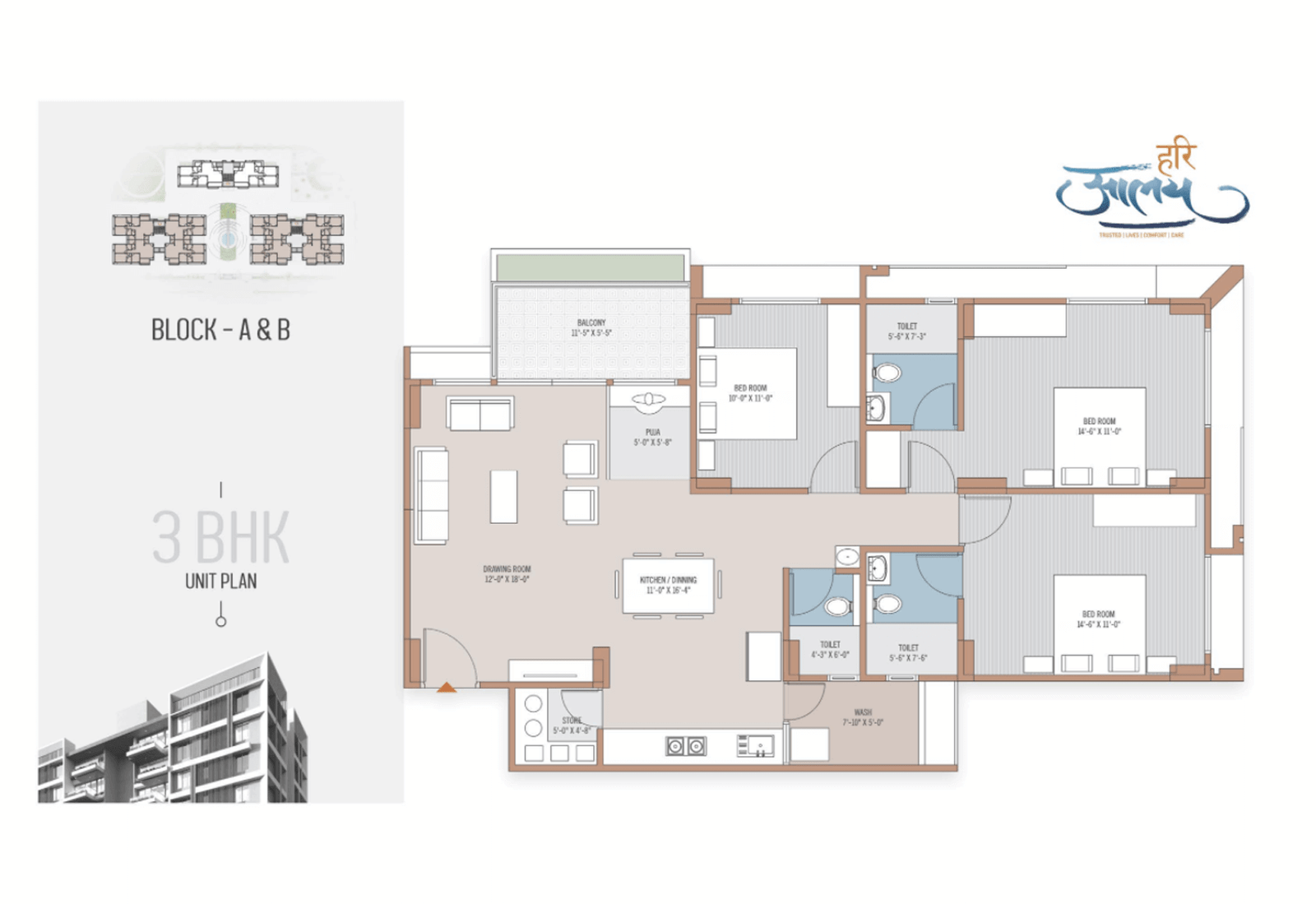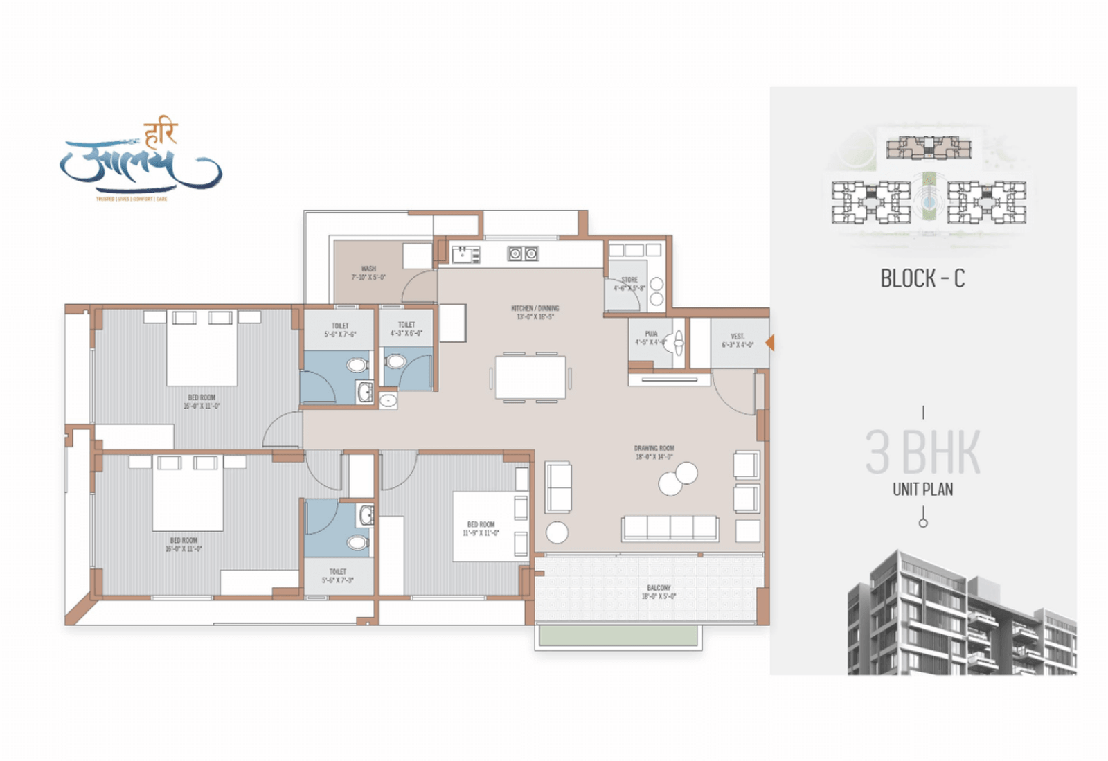 Hari Aalay lets you enjoy the serenity with luxury. The project houses a library, gymnasium, multi-purpose hall, basement parking and various green areas for sitting and play areas.